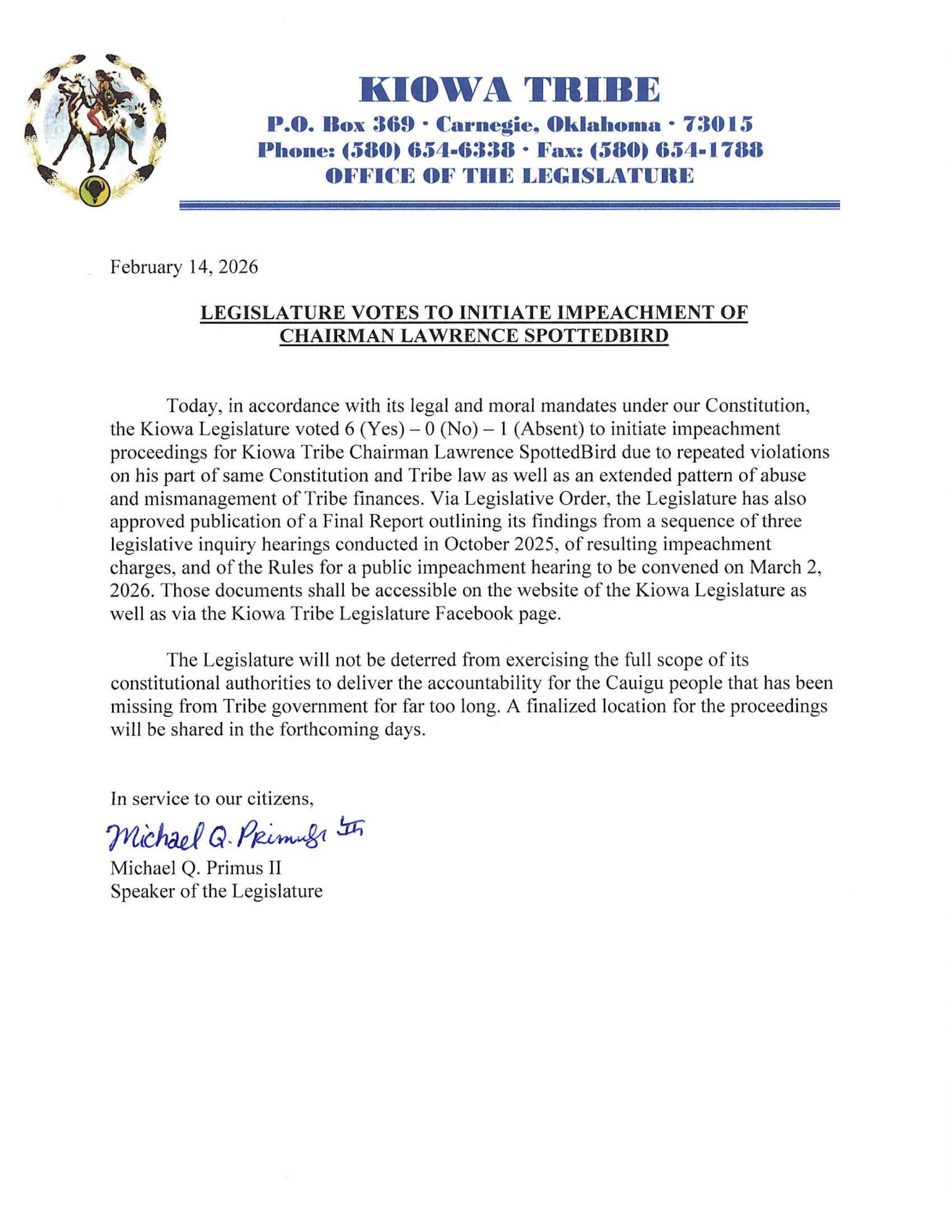 Kiowa 2025 Hearing Documents: