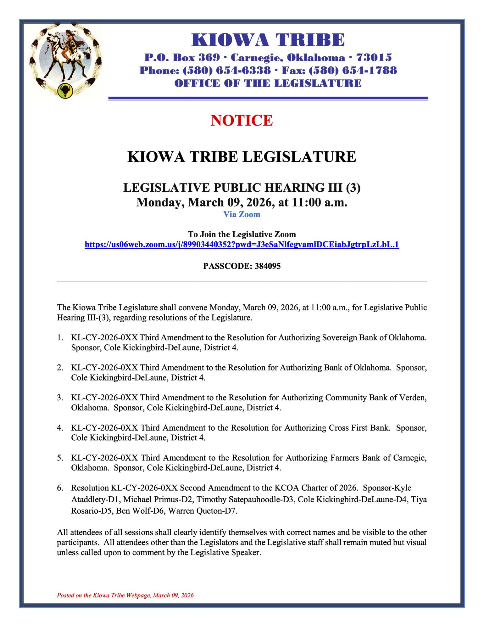 Kiowa 2025 Hearing Documents: