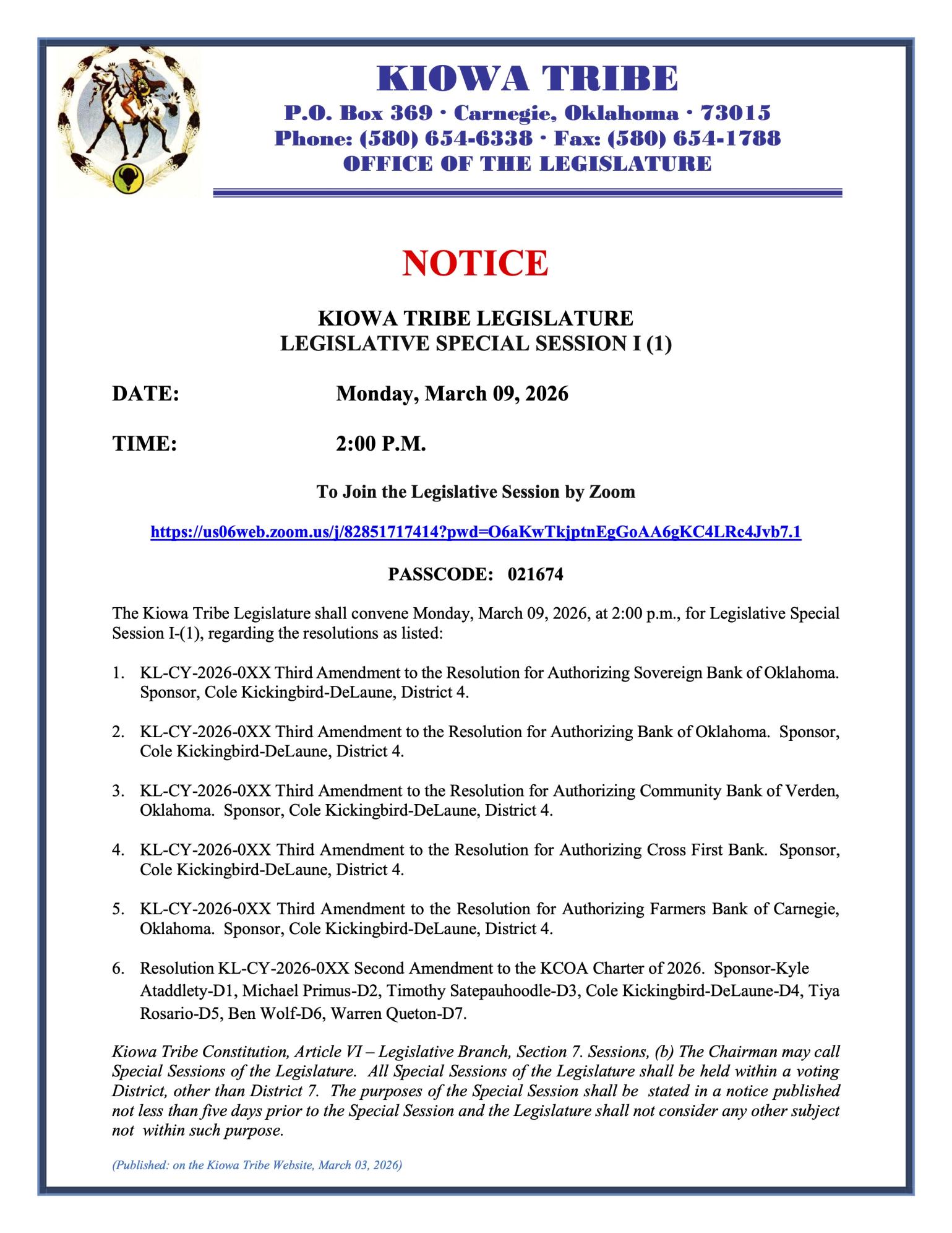 General email: district5legislatureoffice@kiowatribe.org